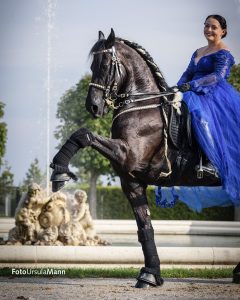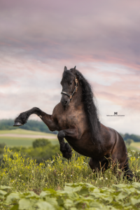 Moritz, mein 13-jähriger Friesenhengst, hat sich schnell zu einem meiner absoluten Lieblingspferde entwickelt. Er ist bis zur Klasse M ausgebildet und liebt es in der Piaffe und Passage zu glänzen. Moritz ist ein wahrer Showstar, der es liebt, sein Können auf der Bühne zu zeigen.